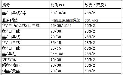 紬丝(silk noil yarn)规格一般为丝棉混纺:20Nm/1, 30Nm/2, 40Nm/1 ,50Nm/1