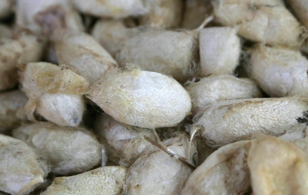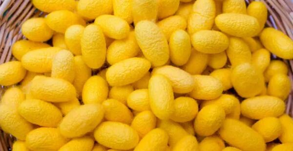 最后来说下黄金蚕丝被,实际就是黄色茧子,是由浙江大学动物科学学院陈玉银教授团队研制了全国首个实用型彩色蚕茧品种“金秋×初日”,其所产的蚕茧及蚕丝显示出天然的金黄色。目前,浙江桐乡,江苏海盐,四川南充,宜宾等地大量养殖,从目前来说黄金茧子个子比较小,纤维会比较细,但双宫茧偏多,从缫丝商检数据结果大多数是4A.5A丝,唯一是这个品种的每张蚕种产量平均在45公斤左右,比白色桑蚕茧对照组增产20%-30%,茧子价格目前与白色茧子价格差不多。因为如果织绸,练布脱去丝胶又是白色的了,黄金蚕丝被是因为保留了一部分丝胶,所以有天然的淡黄色。蚕丝被的价格与白色茧子价格成本差不多。大多数也是选出好的茧子缫丝,双宫以及黄斑茧、破茧、薄茧等拿来做蚕丝被。