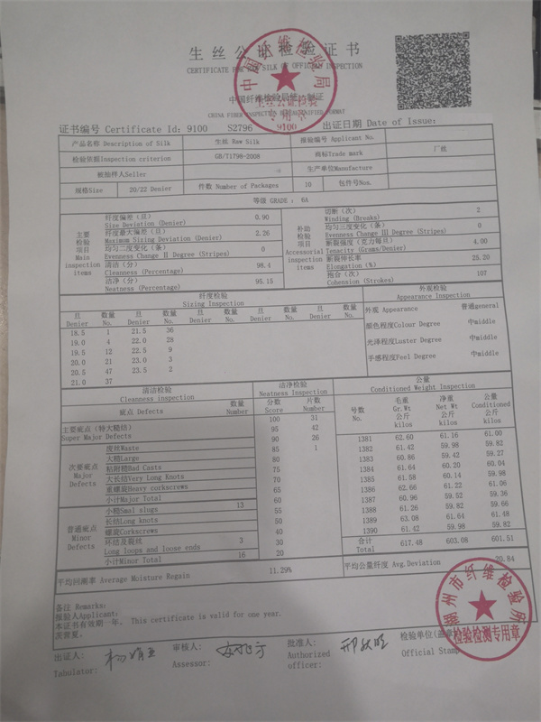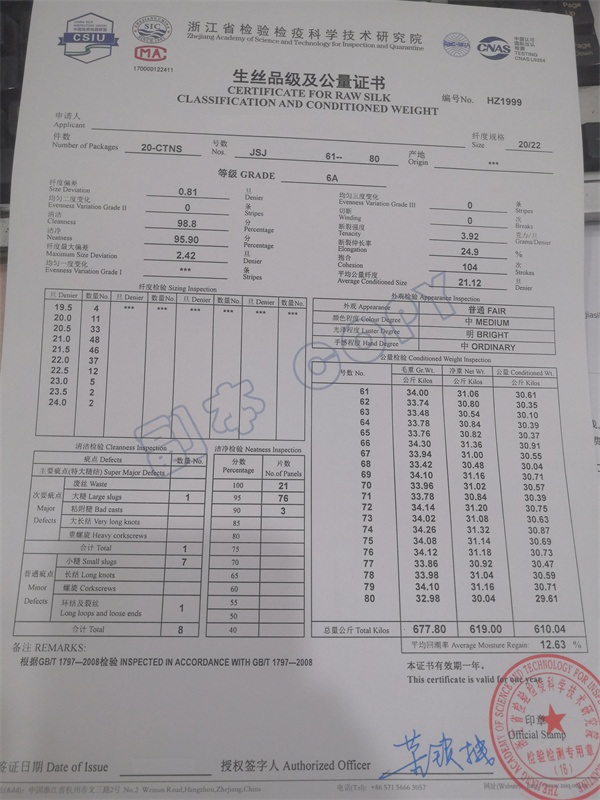白厂丝商检证书范本
