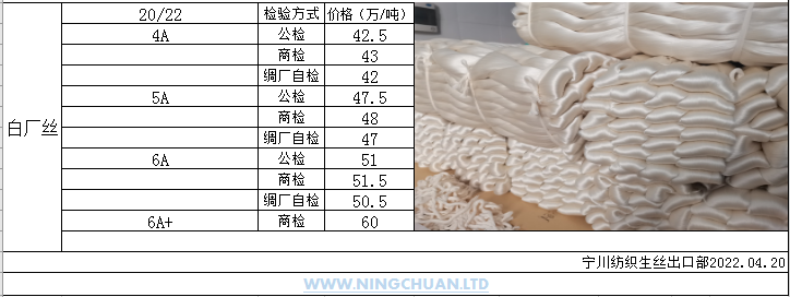 2022年4月20生丝(白厂丝)价格